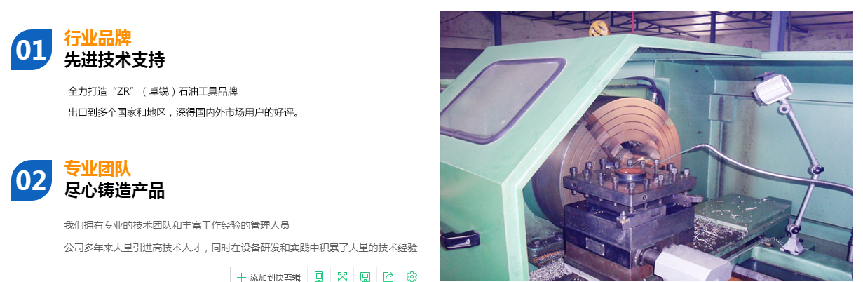 德州卓銳石油機械有限公司成立于2008年10月,專業(yè)生產螺桿鉆具拆裝架、無磁懸掛短節(jié)、螺桿鉆具配件、螺桿清膠機、PDC平面軸承、可調鉆具配件、360度全旋轉拆裝架、螺桿鉆具整機試驗臺、螺桿鉆具馬達試驗臺、渦輪鉆具配件、等壁厚螺桿定子加工機床、等壁厚螺桿鉆具等石油鉆井工具,打撈工具,固井工具及其配件。公司確立并始終堅持不懈地發(fā)揚“誠信,務實,高效,創(chuàng)新”的企業(yè)精神全力打造“ZR”(卓銳)石油工具品牌。業(yè)務實現了快速發(fā)展,并得到業(yè)內人士的廣泛認同,成為石油裝備制造業(yè)一顆璀璨的新星。